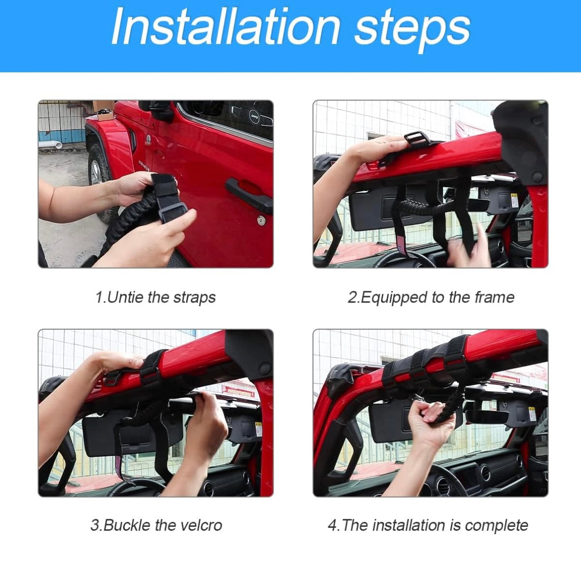 - Easily install in minutes without causing damages to your car, no need to cut the padding or any tools. Just put on the roll bar, tighten the strap, then press hard to secure it, installation completed! Also very easy and convenient to remove and clean.