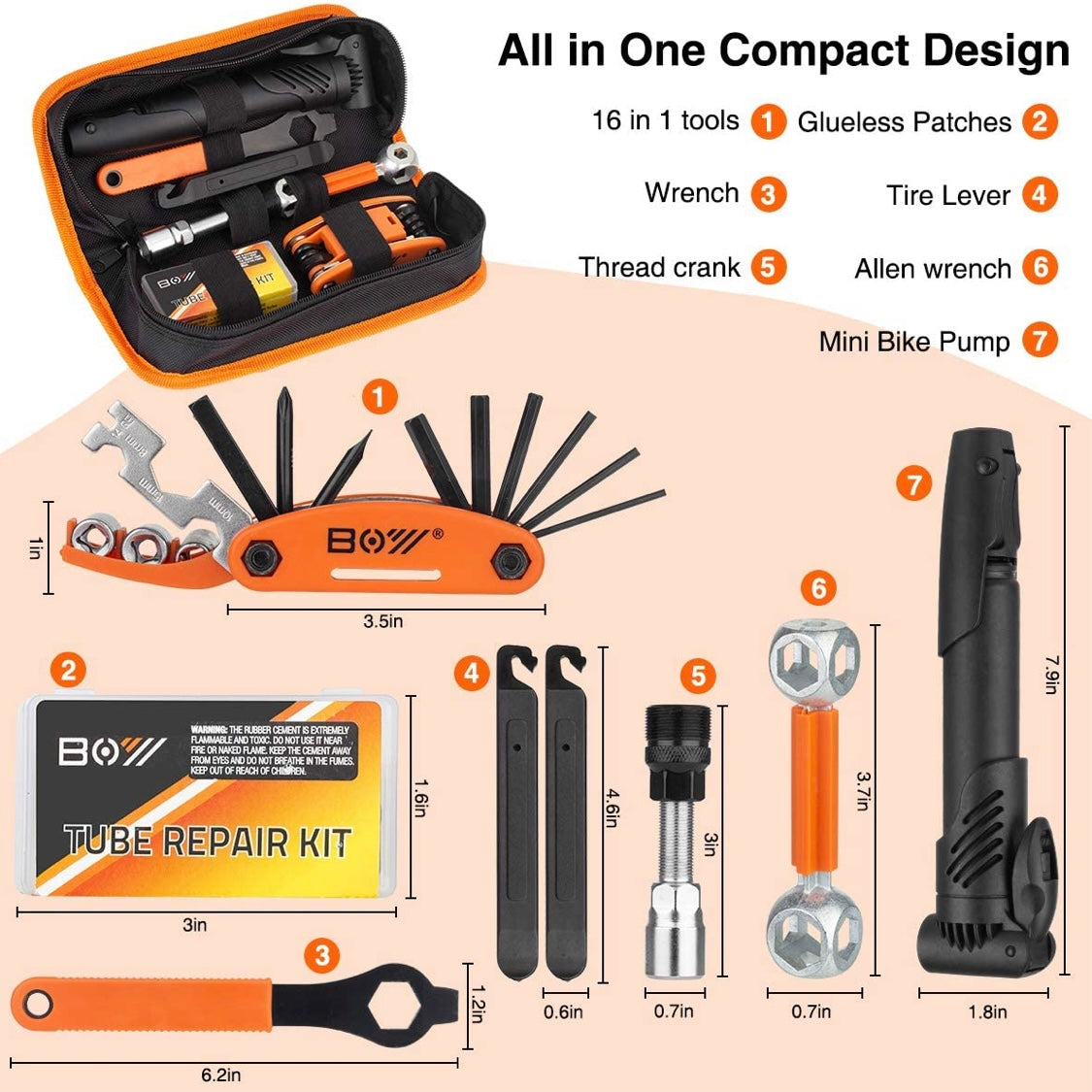 - Bike Repair Kit With Pump And Bag, Bicycle Tube Repair Patch Tool Kit, All Accessory Better Than Other Similar Products—compared To The Repair Function Or The Quality Of Accessories.