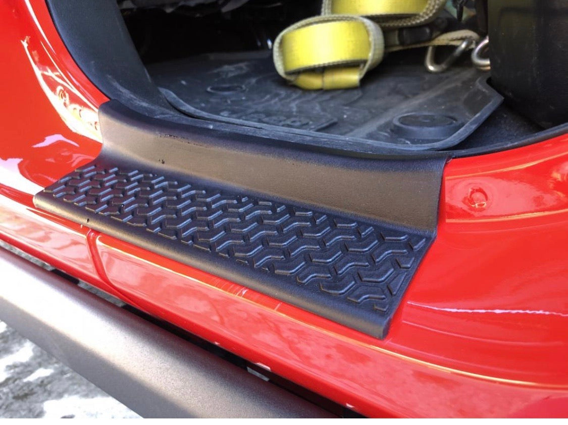 Increased Door Sill Protection. Everyday activities like going to work and taking the kids to school can damage your door sills just as much as hitting those off-road trails. Protect your door sills from all sorts of damage with these Rugged Ridge All Terrain Door Entry Guards. Boasting a tough and durable construction, these door entry guards are engineered to prevent unsightly scuffs and scratches. As an added bonus, these door entry guards also add a rugged appearance to your Jeep thanks to their inlaid all-terrain pattern.