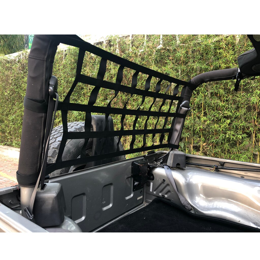 Brand new Jeep Wrangler cargo net. Very strong hold. Can be used to block bushes and trees while still being able to have the fresh air. You can strap things into your jeep with this, or even use it as a hammock on top! Buy yours today while supplies lasts!