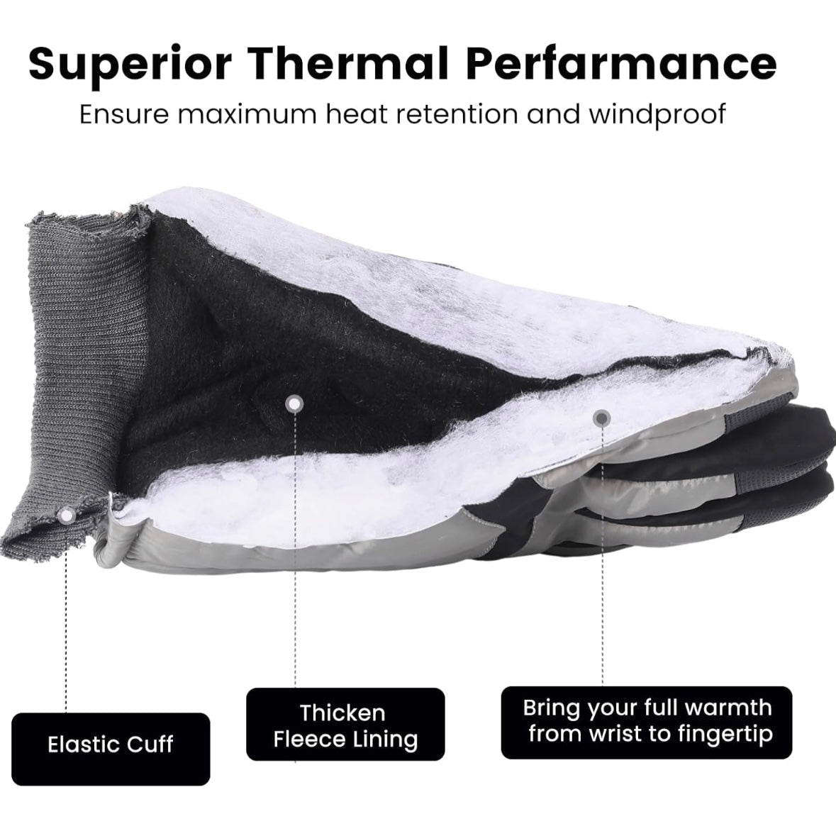 - TOUCHSCREEN GLOVES - This ski gloves are coated with a conductive fabric on the thumb, index finger and middle finger that allows you to tap and swipe with ease without taking off gloves in the cold weather, making you forget the miserable time when you have to contact with others on touchscreen phone with your bare hands in the chilly days.